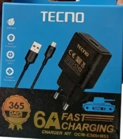Le chargeur rapide Tecno 6A offre une recharge ultra-rapide pour smartphones et appareils compatibles. Compact et robuste, il garantit une performance sûre et fiable au quotidien.
