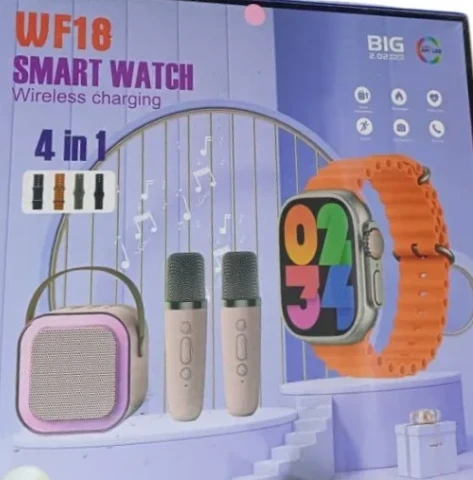 Profitez du divertissement et du style avec ce pack polyvalent 4-en-1. Il comprend une montre intelligente, un baffle portable, et deux micros pour la musique, le karaoké ou les événements. Parfait pour la maison, les fêtes ou les sorties, ce pack réunit praticité et plaisir dans un seul ensemble.